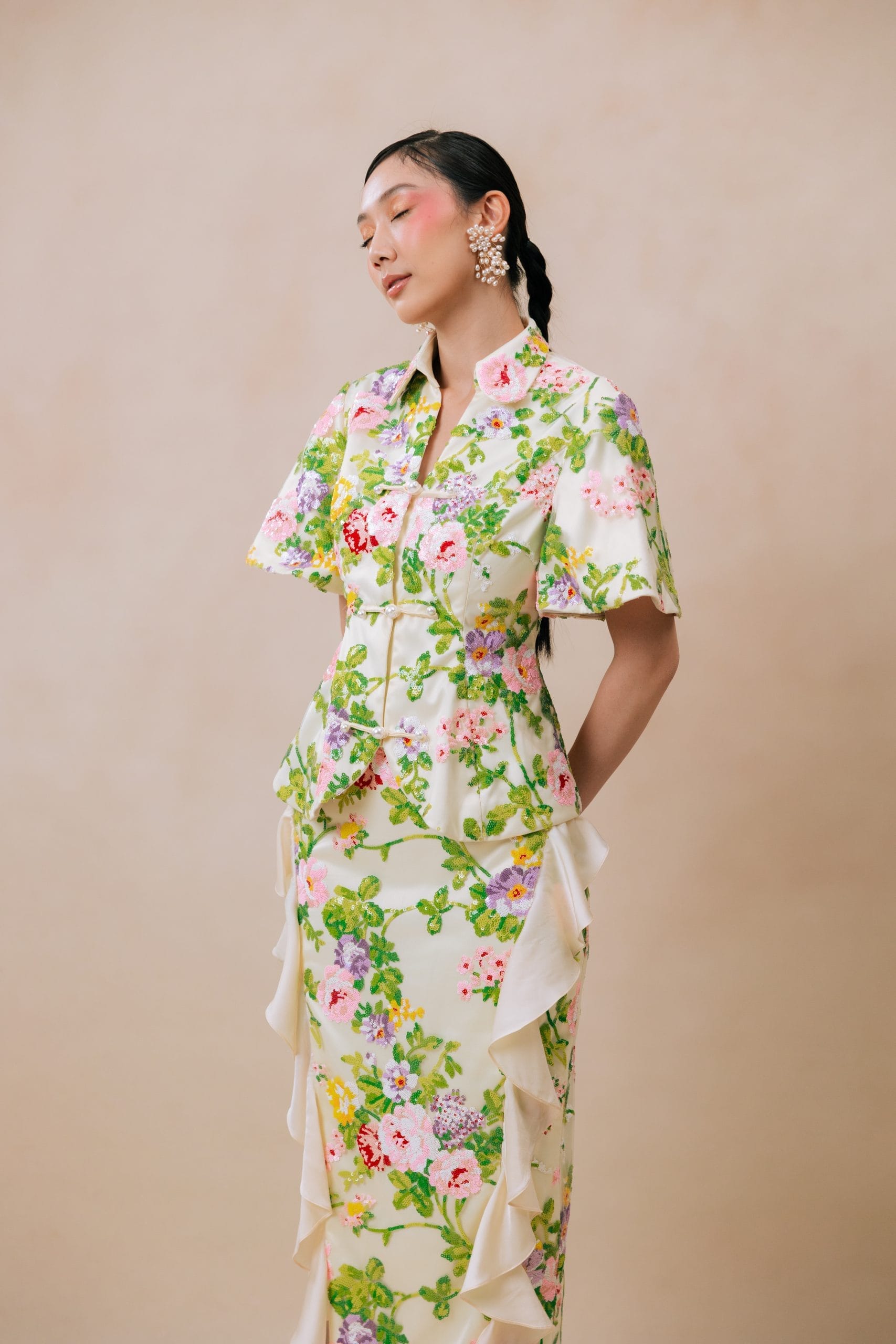 This collection finds the reinterpretation of byMeichi’s signature jacquard fabric, combined seamlessly with other fabric bringing a burst of synergy aesthetically. A few new elements yet to be used in the previous CNY creations set centerstage in this well-curated collection.