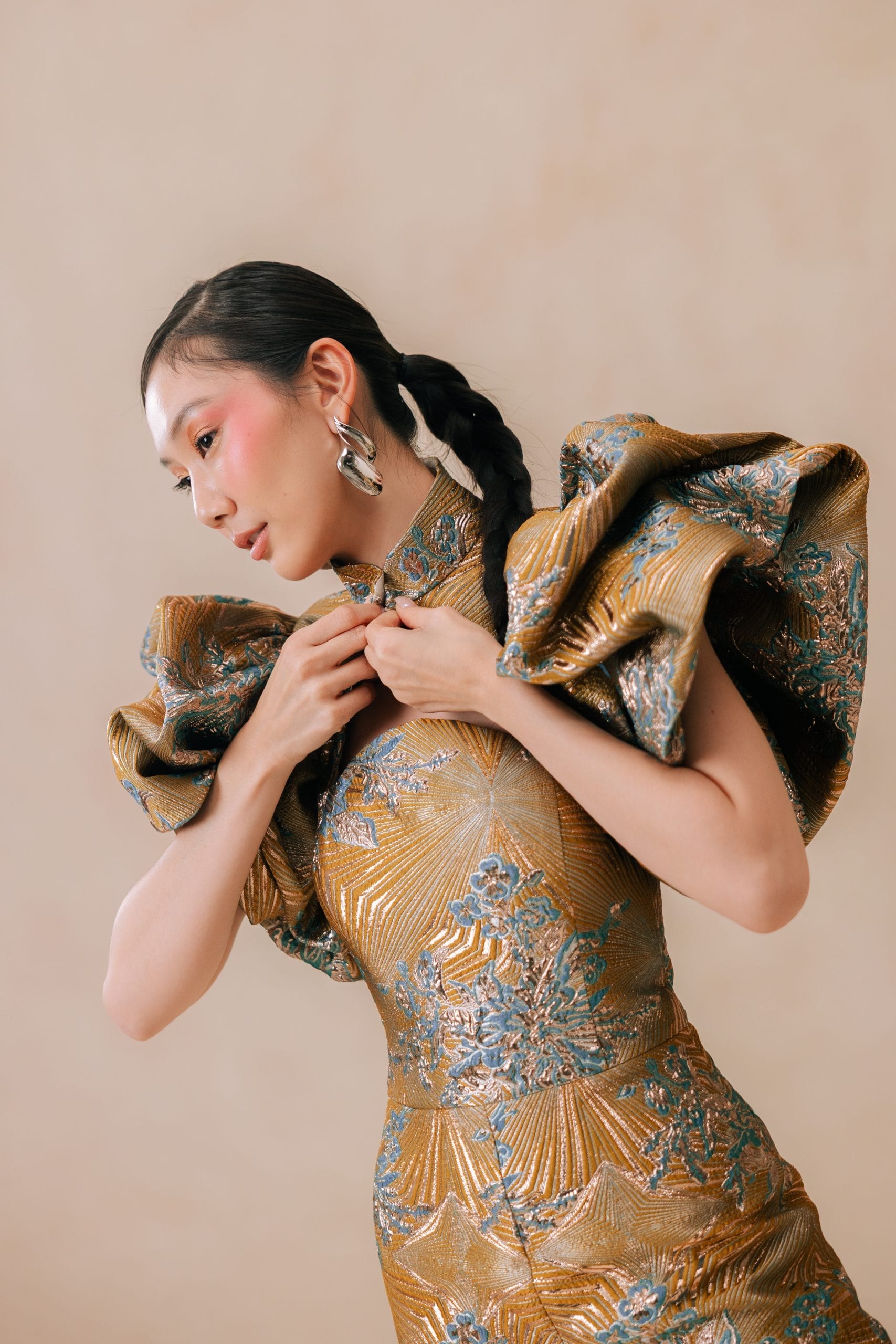 A celebration of quiet radiance. This collection brings together modern silhouette with graceful Oriental touches. Designed for festive moments, meaningful gatherings, and the kind of presence that lingers.